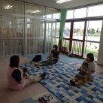 今日のハイハイひろばは、手形を使ってフクロウを作りリースに貼りました