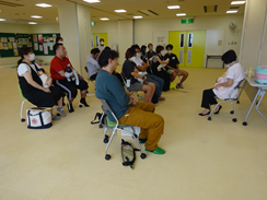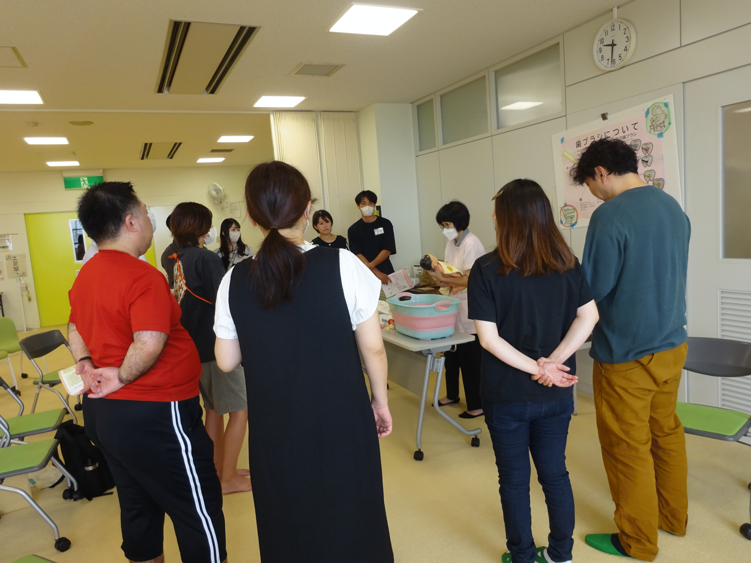 今日は、いきいき広場にてパパママ教室が行われました。助産師の沐浴、抱っこのデモンストレーションのあと沐浴・オムツ交換・パパの妊婦体験など夫婦でおしゃべりしながら楽しそうに体験していました。お子さんの誕生楽しみですね