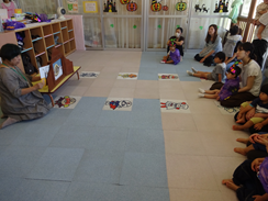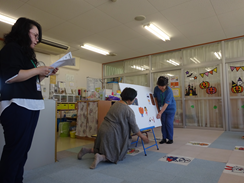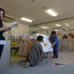 今日のグングンひろばは、ボランティアのカタリーネさんに来ていただきパネルシアターや紙芝居を行っていただきました。みんな静かに見ることができていましたね