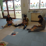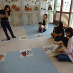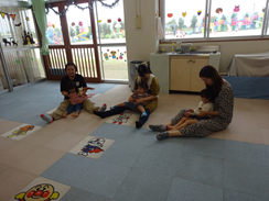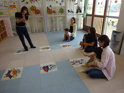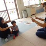 今日の初めてのリトミックは、絵本「どんぐりどんぐり」を見て音あそびで楽しみました。車に乗ってどんぐりを探しに行って拾ったりしました。楽しそうでしたね