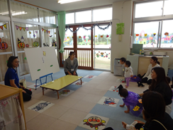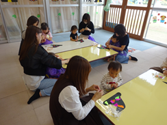 図書館の方に来て頂いて、パネルシアターや大型絵本を読んでもらいました。簡単なゲームもあって楽しかったですね