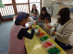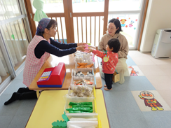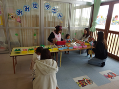 トコトコひろばのおともだちは、ママと一緒にお店屋さんにお買い物に行きました