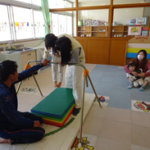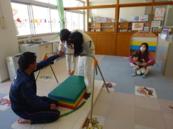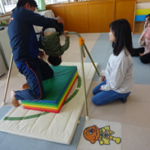 鉄棒にぶら下がりブラブラしたり、逆上がりをしました。みんな怖がらず出来ていましたね