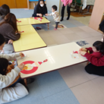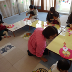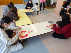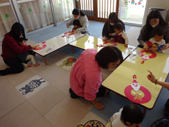 サンタクロースとトナカイの顔にみんな上手に貼れましたね