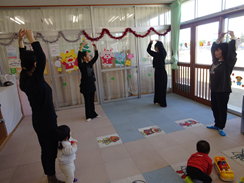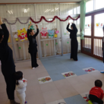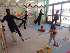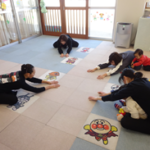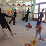 ストレッチで体をほぐしたあと、バーレッスンで体を動かしました。体を動かしているとだんだん体が柔らかくなってママたちはびっくりしていました😲