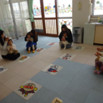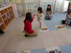 今日の初めてのリトミックは、絵本「おやさいとんとん」を見たあと手袋シアターの「カレーライスのうた」でしょうこ先生とカレーライスを作りました。歌を歌いながら楽しそうでしたね