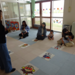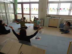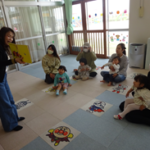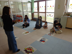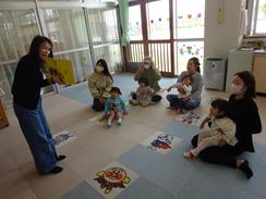 絵本を見ながらいないいないばあをしたり、絵本を見たあと音あそびをして親子で楽しみました