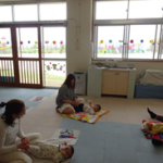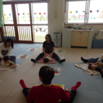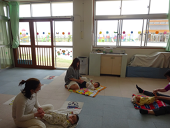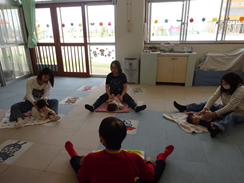 お子さんたちは、ふれあいあそびで楽しんだ後ママにマッサージをしてもらいました